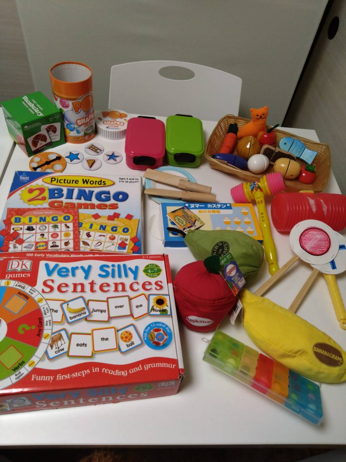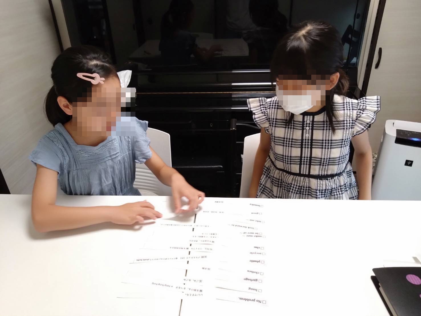 幼児には大学で学んだノウハウを活かし、ハンズオン(自分で触ってやってみる)をたくさんさせます。例えば、色塗りやはさみ、のりを使って工作もしますのでとても楽しく英語を学ぶことができます。