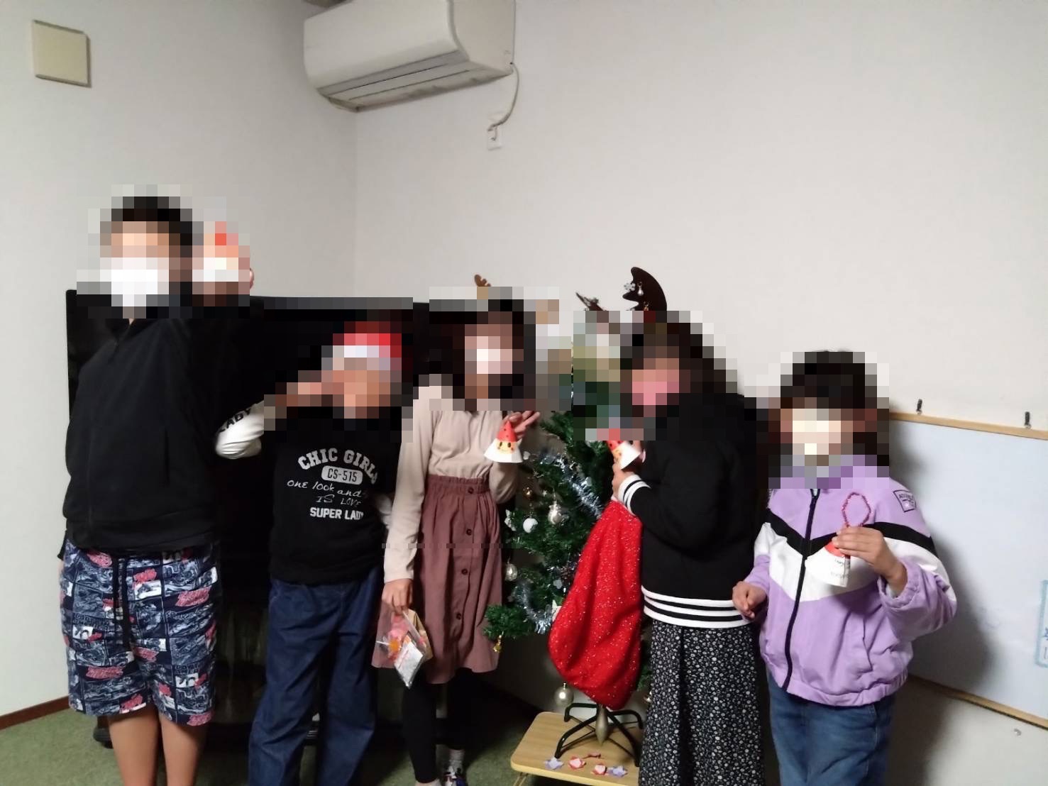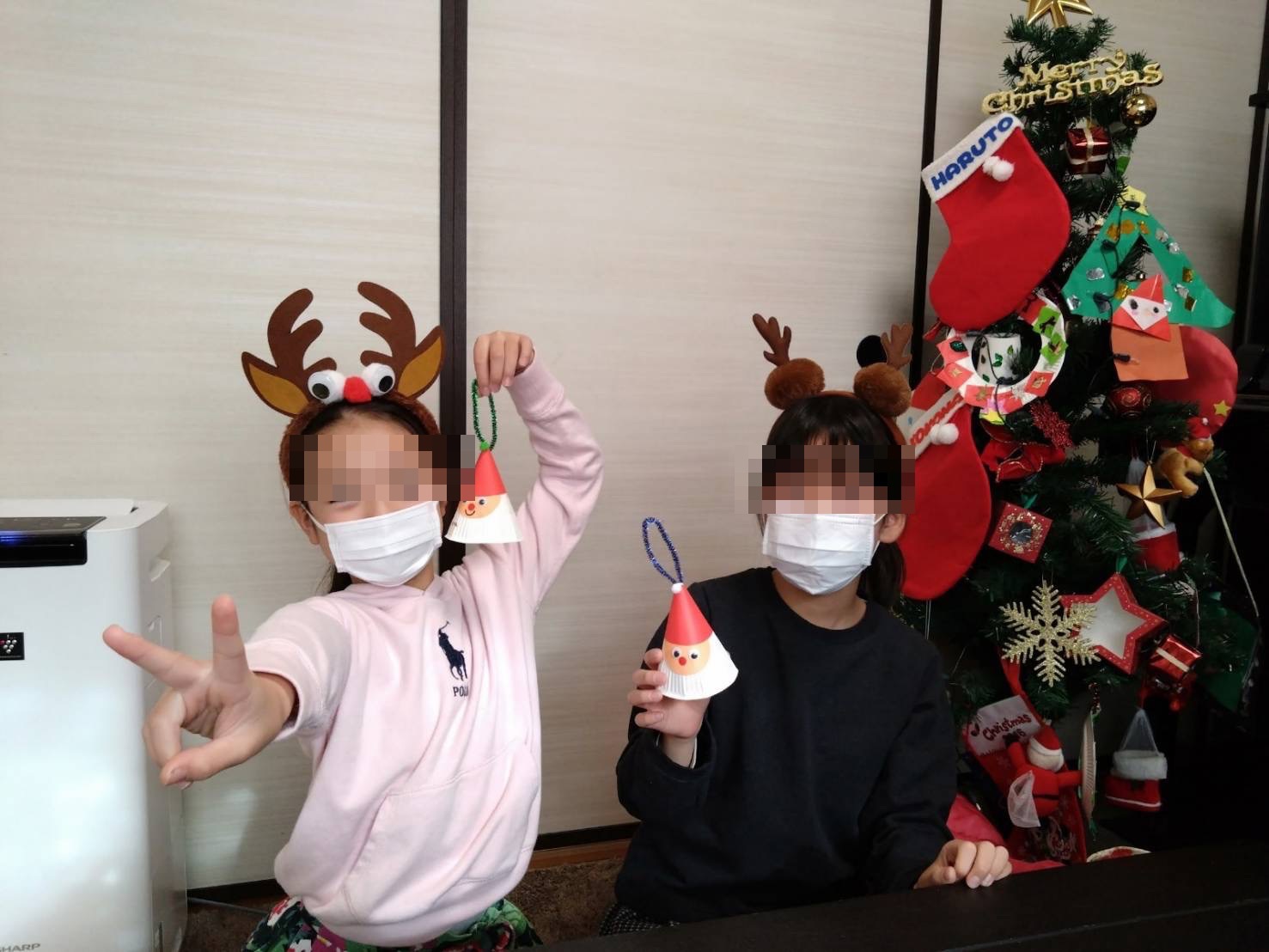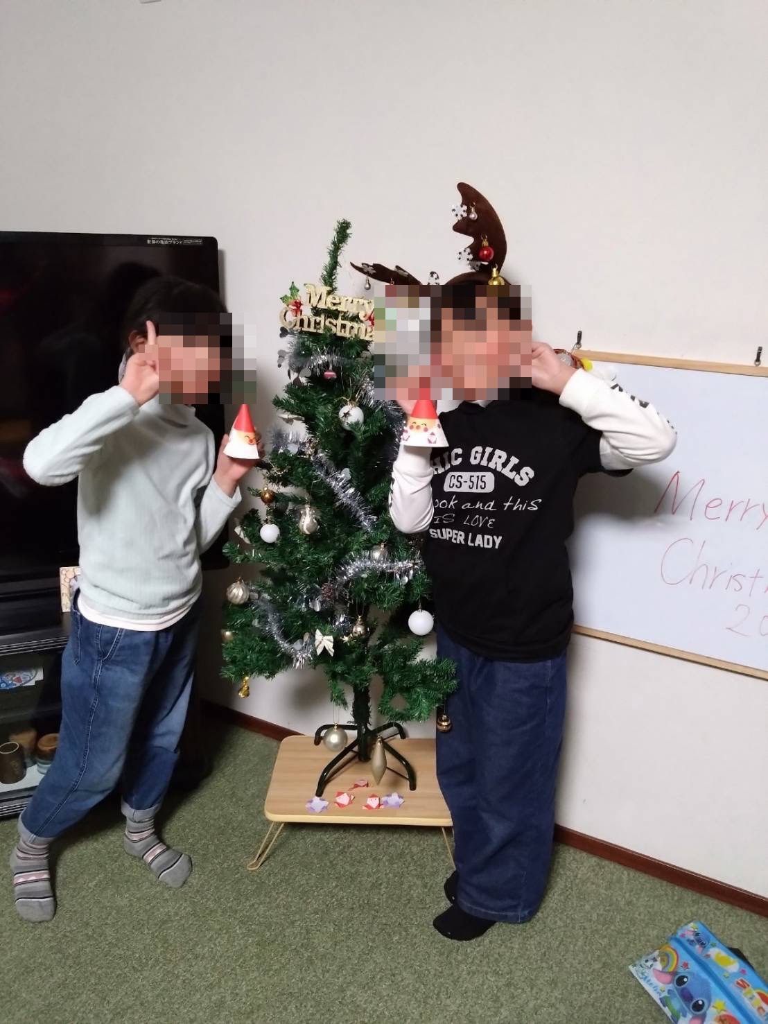 クリスマスツリーの前でポーズ